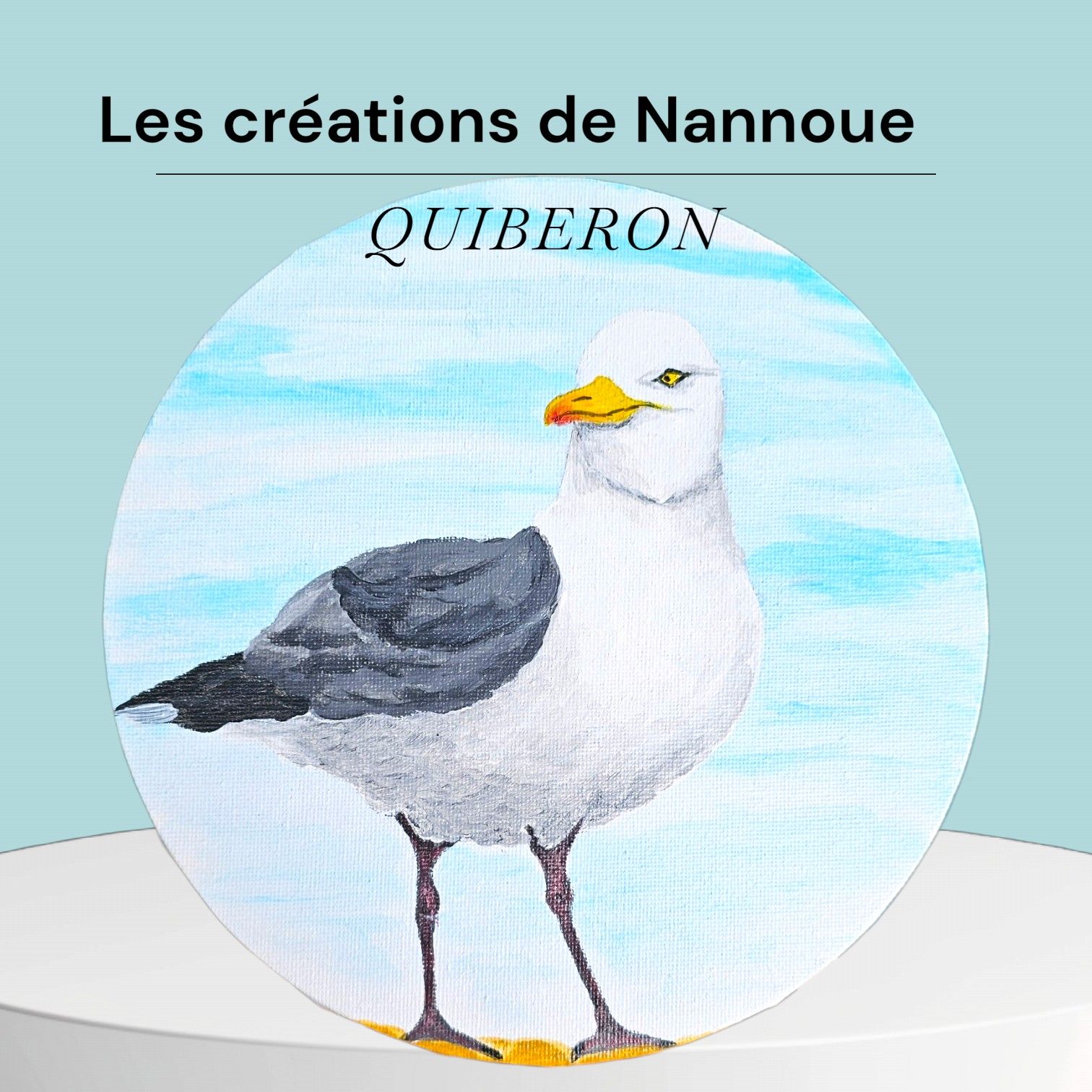 Toile ROND 20x20 , peinture acrylique : Goéland adulte. Artiste Nannoue à Port-maria Quiberon.